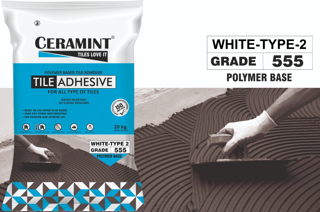 Ceramint Type 2 Tile Adhesive – Grade 555 is a premium white polymer-based adhesive designed to deliver strong bonding, smooth workability, and superior finish. It is ideal for applications where both performance and aesthetics are important.