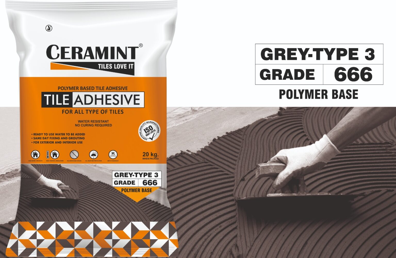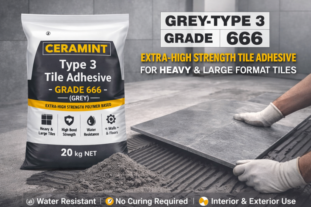Ceramint Type 3 Tile Adhesive – Grade 666 (Grey) is a high-performance, polymer-based adhesive engineered for maximum bonding strength, durability, and load-bearing capacity. It is designed for large format tiles, heavy tiles, and high-traffic areas where superior adhesion is essential.